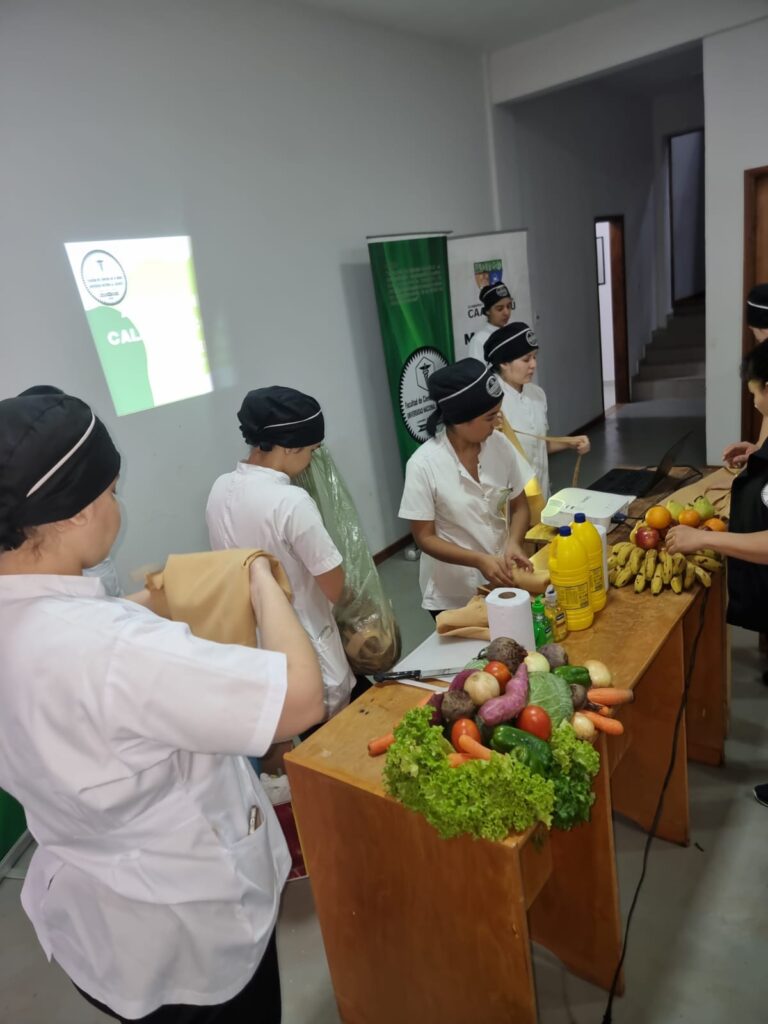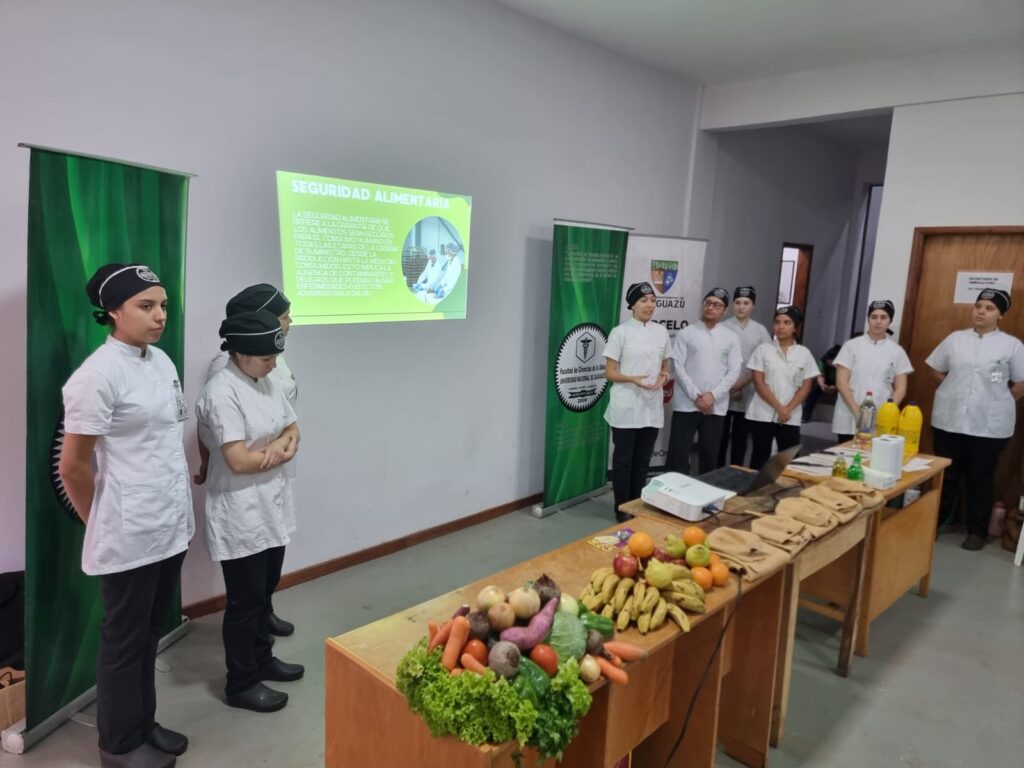 RELACIONES INTERINSTITUCIONALES || En el marco del convenio con la Gobernación del 5° Departamento, los estudiantes del 4° año de la Carrera Nutrición acompañados por los docentes Mgtr. Lisandro Barrios, la Mgtr. Bernardita Giménez, la Secretaria de Curso Lic. Vanesa Molinas y la Asistente de Extensión Universitaria Wilma González han ido hasta la ciudad de Caaguazú a capacitar sobre el tema «Aseguramiento de la calidad y conservación alimentaria en instituciones educativas» la misma estuvo dirigida a personas que fungirán de cocineras/os en instituciones educativas que serán beneficiadas con la aplicación de la Ley 7264/24.