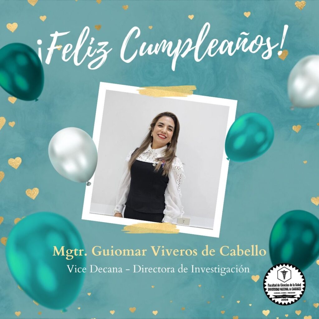 La comunidad educativa de la Facultad de Ciencias de la Salud hace llegar sus más cálidas felicitaciones a la Mgtr. Guiomar Viveros de Cabello, Vicedecana y Directora de Investigación en la celebración de su Cumpleaños, deseándole abundantes bendiciones, salud y éxitos en cada uno de sus proyectos.