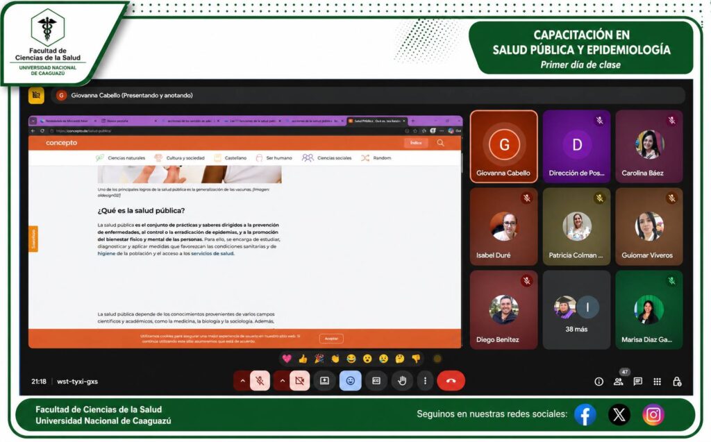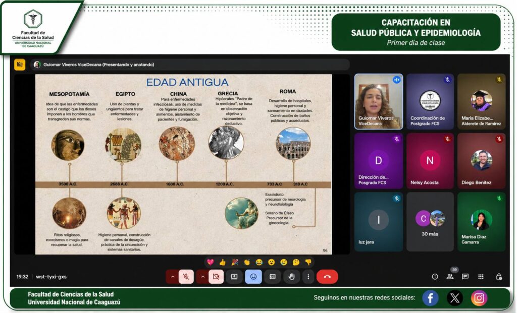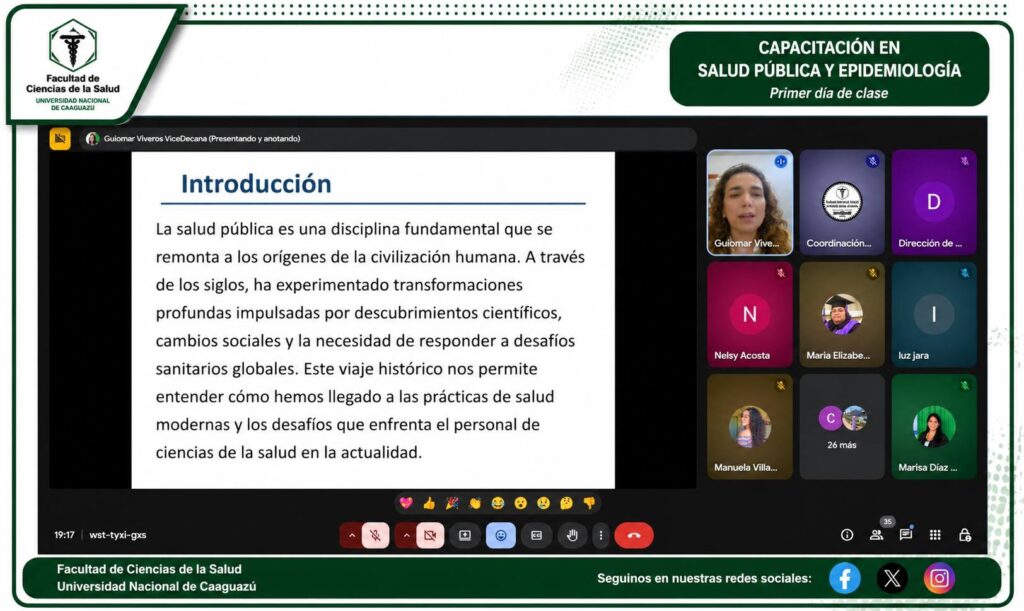 A continuación, compartimos algunas capturas del primer día de clases, que evidencian el desarrollo de las actividades académicas y la activa participación de los profesionales inscritos.