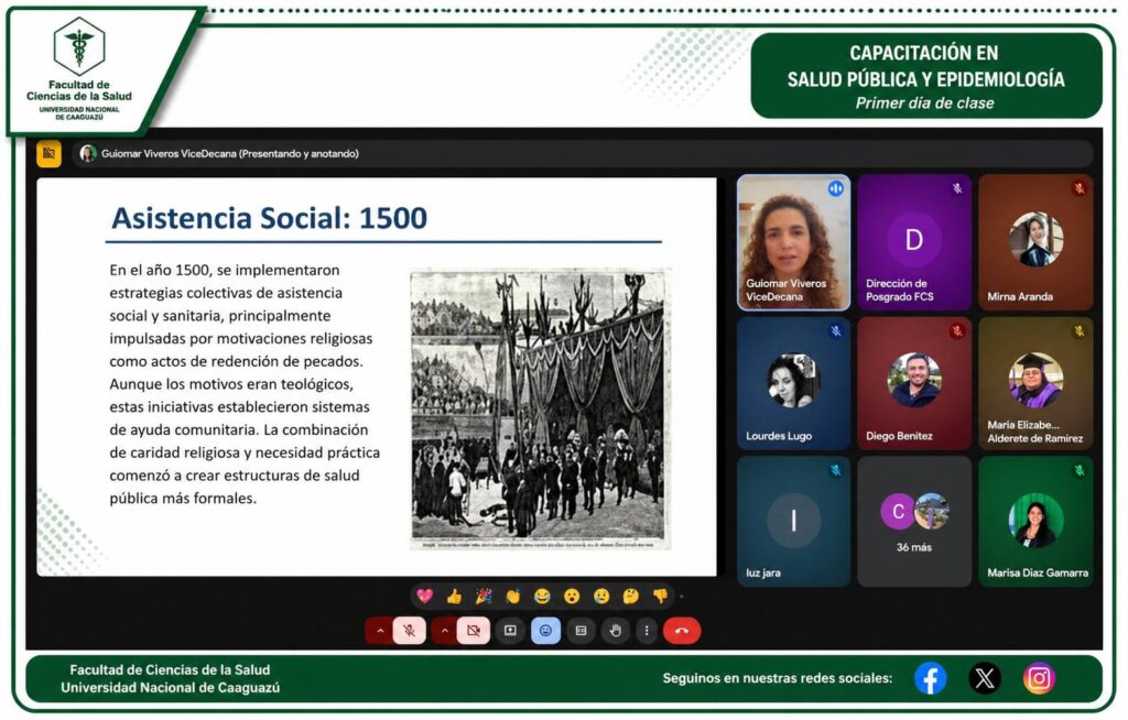 Posteriormente, se desarrolló la primera clase del primer módulo, a cargo de la Mgtr. Guiomar Viveros de Cabello, contando con la participación de un importante número de cursantes, reflejando el alto interés y compromiso con la formación continua en el ámbito de la salud. ![]()