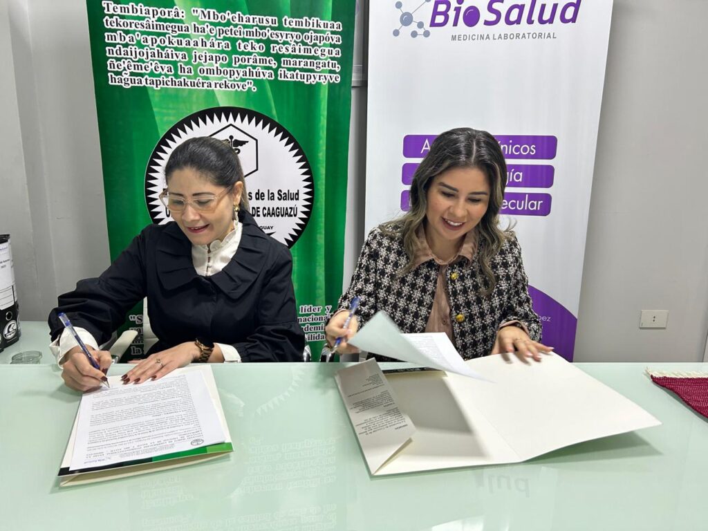 El acuerdo fue suscrito por la Prof. Mgtr. Rosa Noemí Espínola Martínez, Decana de la Facultad de Ciencias de la Salud, y la Dra. Analía Ortiz Rolón, representante de BioSalud, quienes reafirmaron el compromiso de ambas instituciones con la formación de calidad, la investigación aplicada y la extensión universitaria con enfoque en Responsabilidad Social Universitaria (RSU).