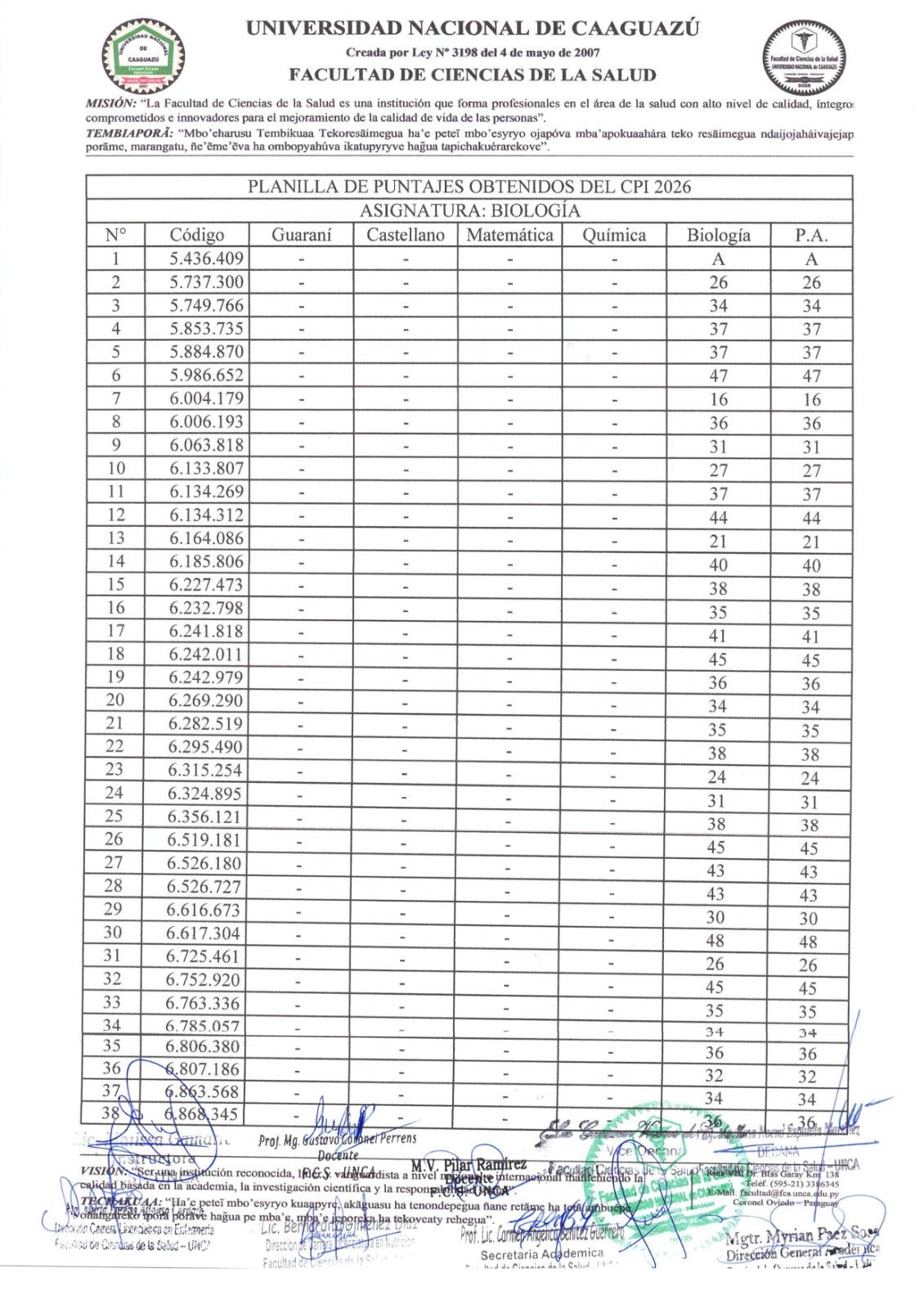 La Facultad de Ciencias de la Salud – UNCA comunica los Resultados Oficiales del CPI 2026 correspondientes a la asignatura Biología, realizada en fecha 27 de febrero de 2026.