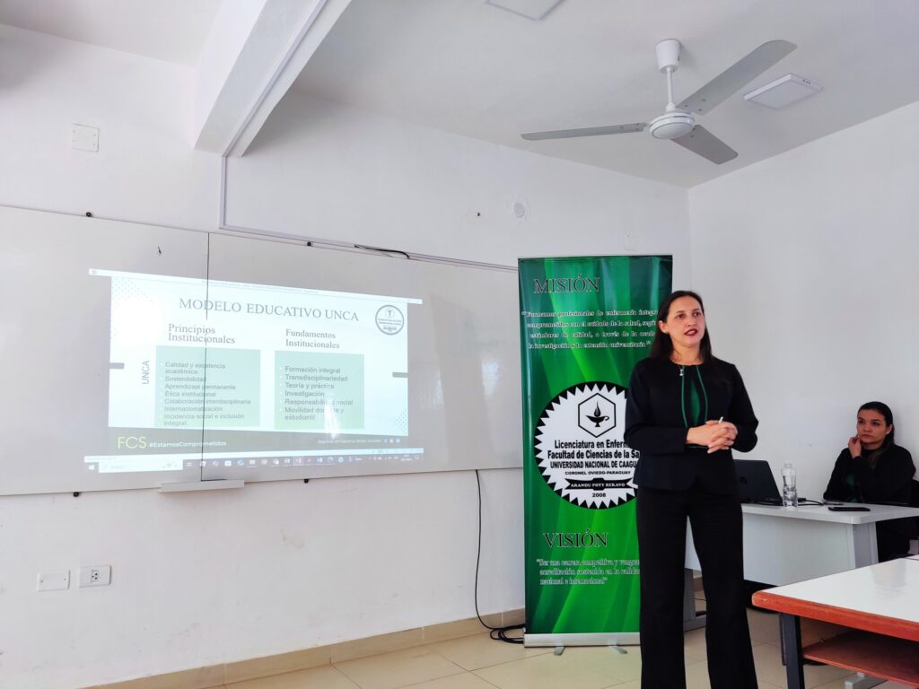 La jornada estuvo dirigida a los docentes de ambas carreras, y contó con la participación como facilitadora la Mgtr. Myrian Páez Sosa, Directora General Académica. Acompañaron la actividad la Mgtr. Rosa Noemí Espínola Martínez, Decana, y la Mgtr. Guiomar Viveros de Cabello, Vicedecana.